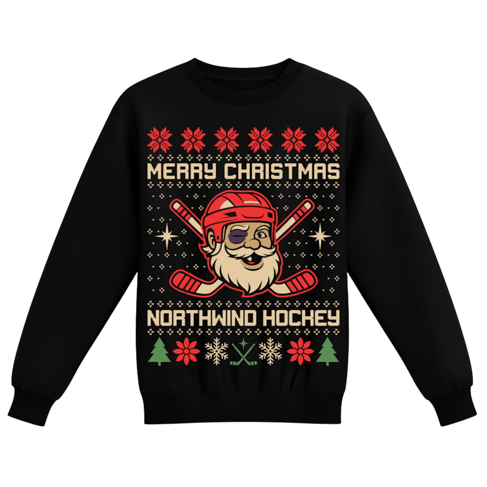 "Celebrate Christmas in the Scrappy Santa Sweater — Santa’s giving gifts and catching hands."